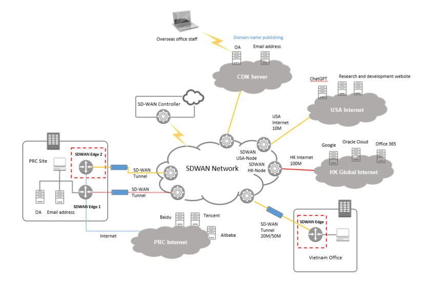 The dynamic application acceleration product is a combination of SD-Speed +CDN intelligent DNS resolution, which aims to help overseas employees of users on all continents around the world to access domestic servers quickly and conveniently through the Internet. The target customer groups include multinational companies, companies with branches overseas but few employees, companies with information technology and IT procurement decision-making power in China, and companies with business servers deployed in China where overseas personnel need to accelerate access back to China. Users need to quickly and stably access server resources back to China to improve the access experience, and are concerned about the security of reverse access back to China. Many applications hope that the content transmission link is secure and not tampered with. CDN can support a series of encrypted link accesses of https to ensure that the business is not tampered with or hijacked.