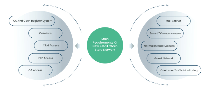 1. Systems such as POS, cash register, email, internet services, OA, CRM, and ERP, as essential services for stores, require high-quality network guarantee.